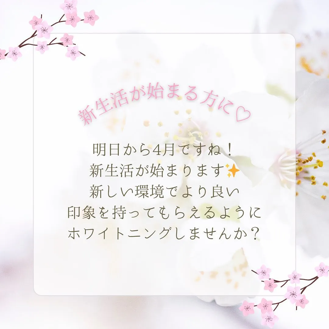 🌸✨🌸✨🌸✨ 🌸✨🌸✨🌸✨明日から4月🩷新しい生活と共に美意識上げていきましょう✨#ホワイトニング#ホワイトニング四日市#ホワイトニングサロン#ホワイトニング専門店#セルフ#セルフホワイトニング#美容#歯科提携サロン#EAR…